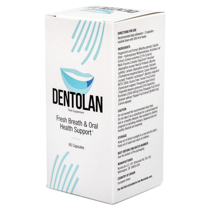 Dentolan är en innovativ produkt som ger omfattande stöd vid halitos. Glöm tuggummin! Tack vare Dentolan kapslar kommer du att återfå frisk andedräkt naturligt och du kommer att känna dig mer självsäker i nära kontakt med andra.